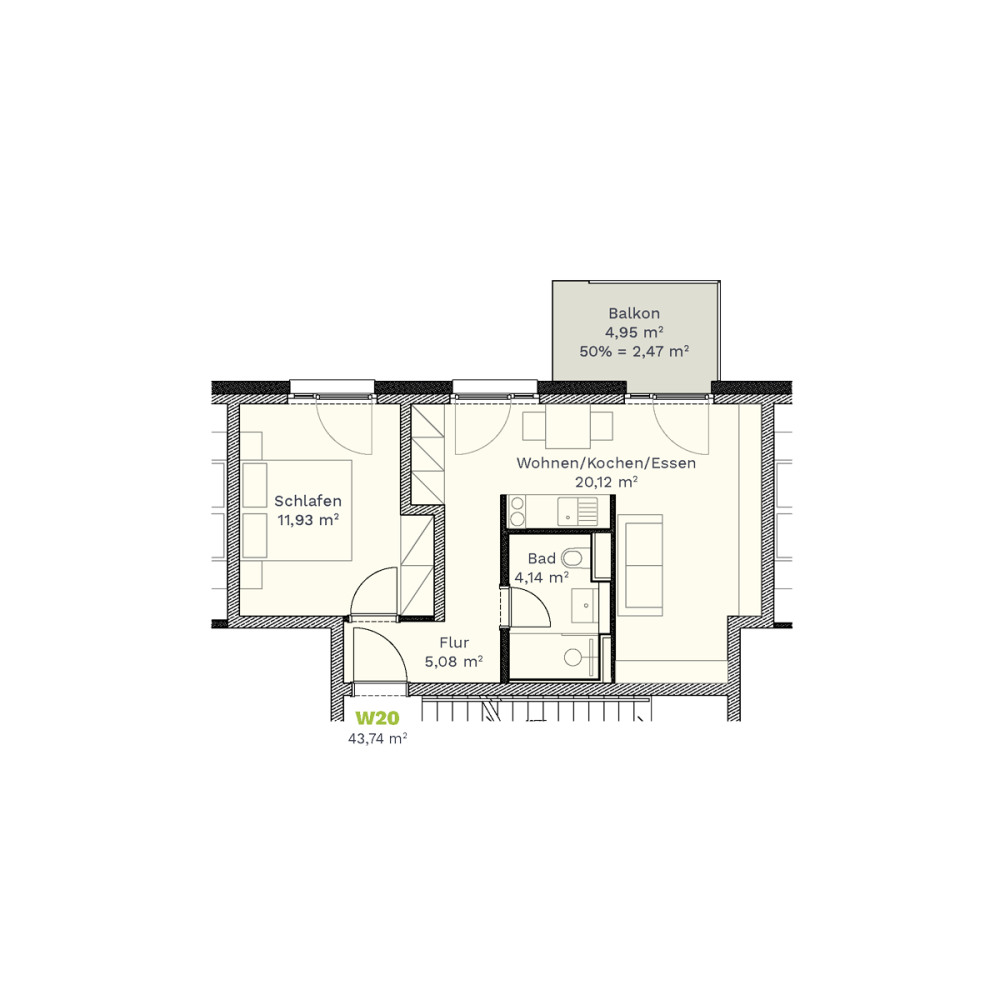 Wohnfläche 43,74 m²